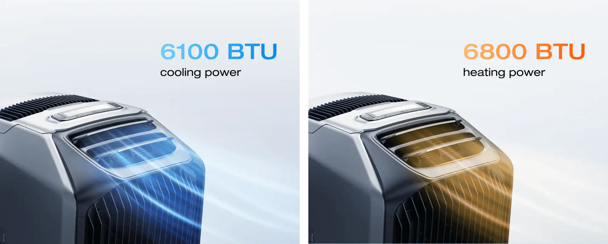 הורידו את הטמפרטורה ב-8°C תוך 15 דקות בעזרת עוצמת קירור של 6100 BTU, וצרו סביבה אידיאלית לכל תרחיש. התחממו במהירות עם 6800 BTU חימום, והעלו את הטמפרטורה ב-9°C תוך 15 דקות – מושלם לשמירה על חמימות בפעילויות חוץ קרירות כמו קמפינג בסתיו.